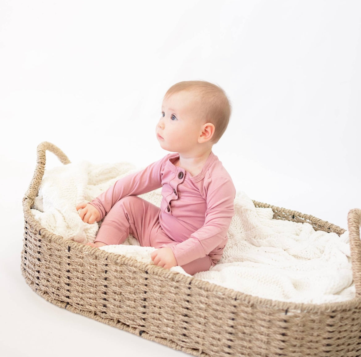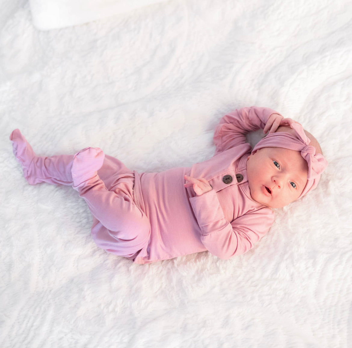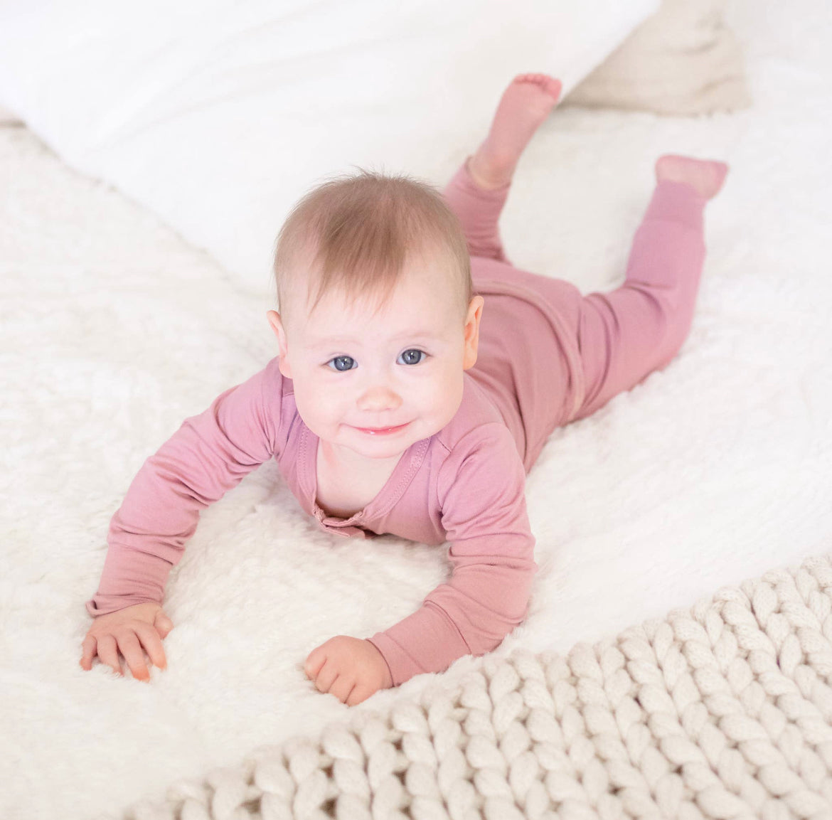 Todelt sæt med bluse og bukser. Fold over til hænder og indbygget fødder (kun i 0-3 mdr og 3-6 mdr). Så man selv kan regulere varmen på hænder og fødder.